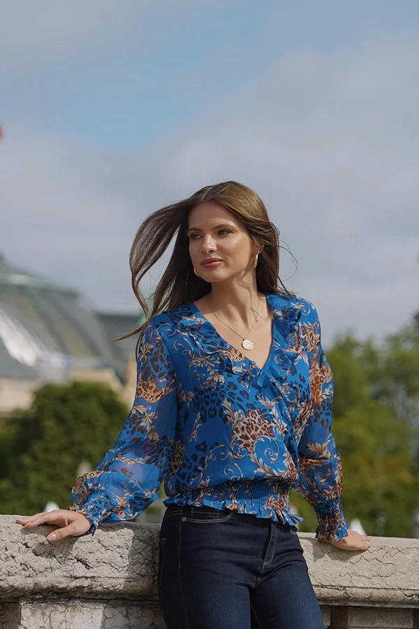 - Ultra-feminine frilled neckline