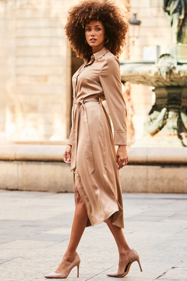- Cinch your waist with the tie belt
