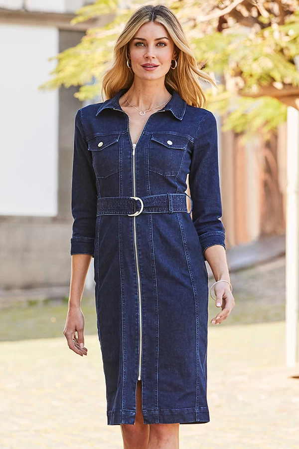 - Denim dress, but make it chic