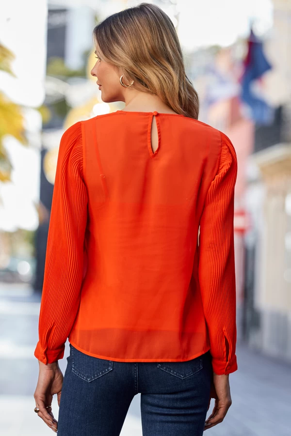 - Beautiful pleated blouson sleeves