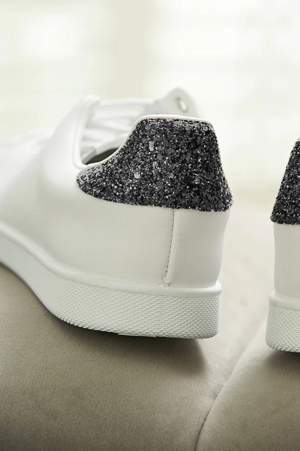 - Glitter heel tab for a luxe touch