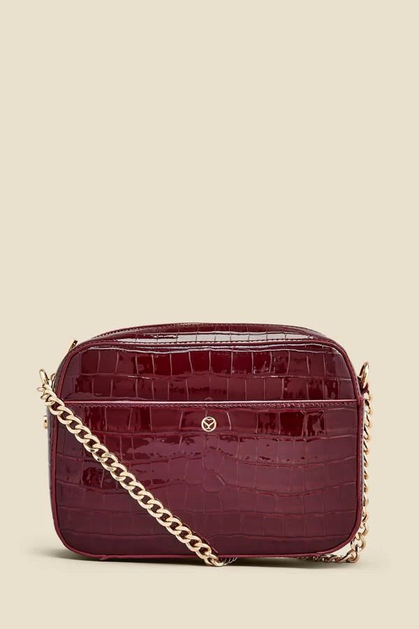 Wine Croc Faux Leather Chain Detail Cross Body Bag